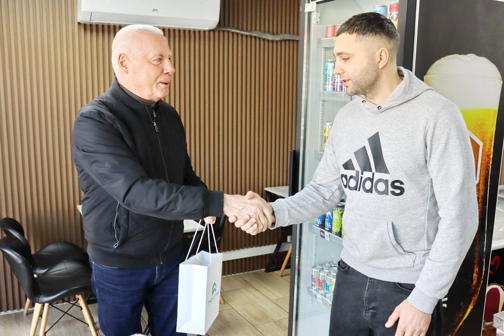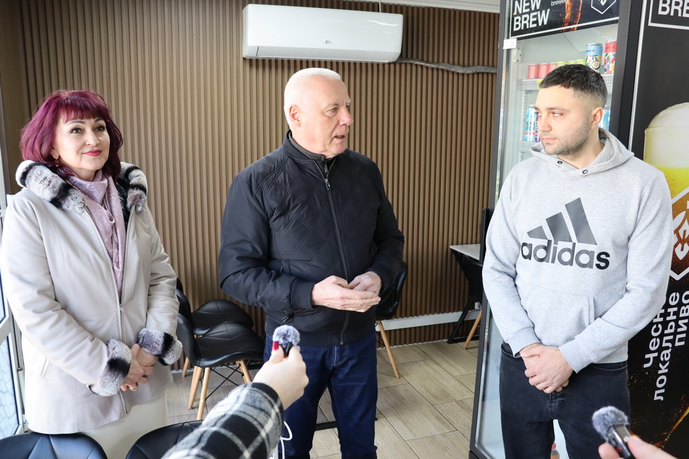 Міський голова Анатолій Вершина відвідав авторську бургерну «Fibonacci Bar», щоб особисто привітати переможця 13-го грантового конкурсу Олександр Міщенко з успішним запуском власного бізнес-проєкту.